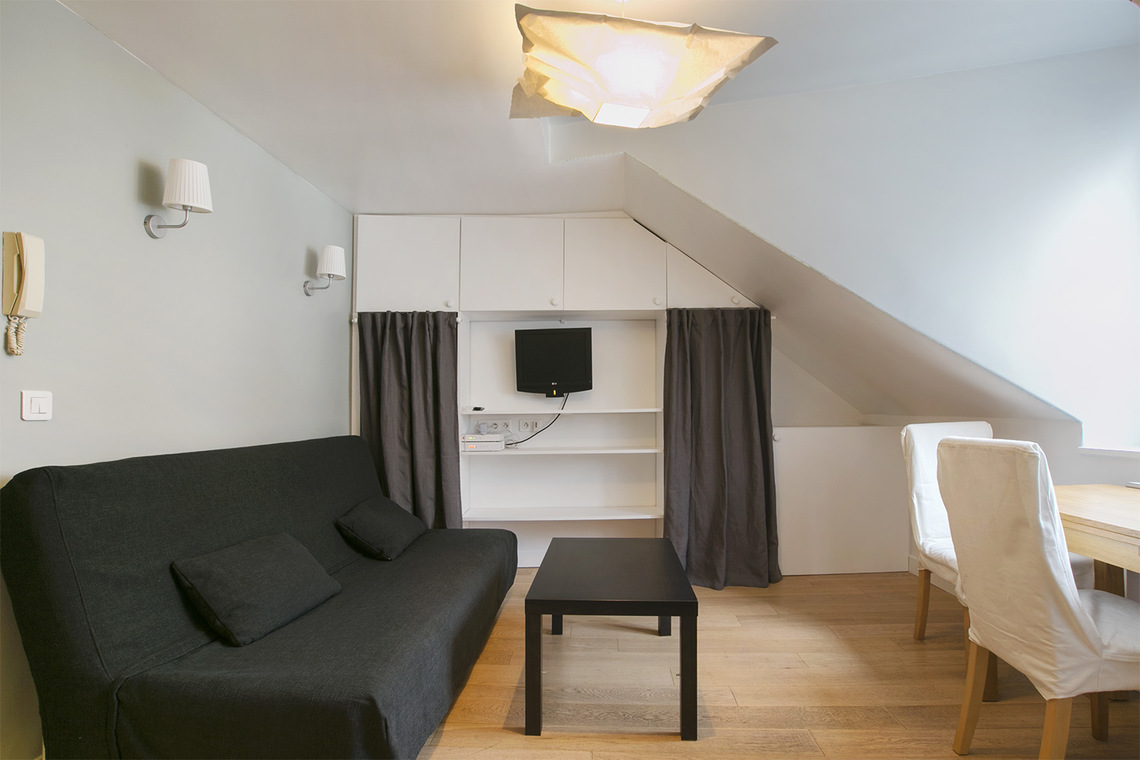 Möblierte 1-Zimmer Wohnung in Paris von 20M2, Lage: rue Saint Dominique im 7. Arrondissement von Paris, Invalides-Viertel, in einem Pariser Wohnanlage 4 OG.
