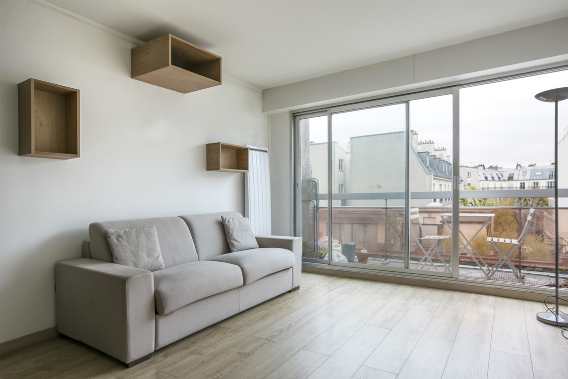 Möblierte 1-Zimmer Wohnung in Paris von 30M2, Lage: rue du Delta im 9. Arrondissement von Paris, Montmartre-Viertel, in einem Pariser Wohnanlage 5 OG.