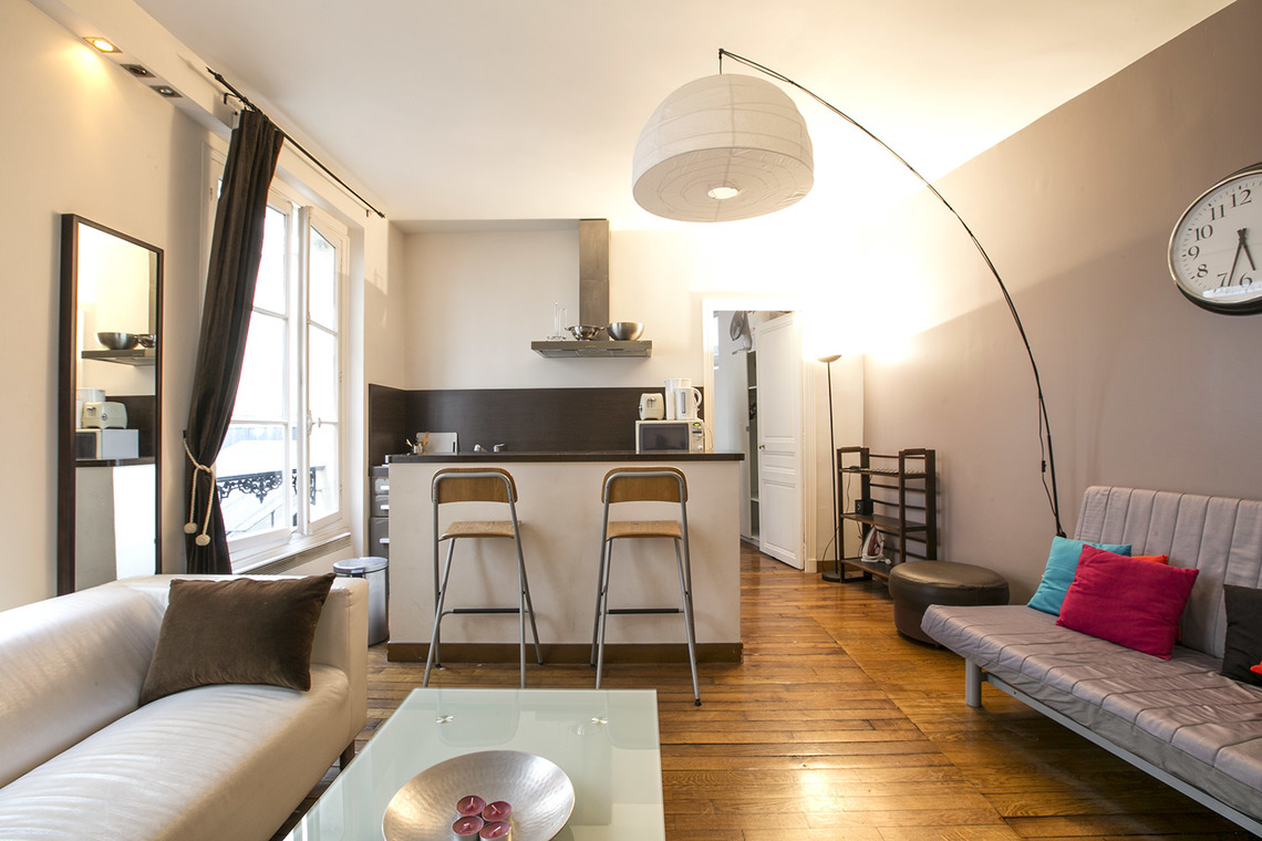 Möblierte Wohnung in Paris von 39M2, Lage: rue Pavée im 4. Arrondissement von Paris, Marais-Viertel, in einem Pariser Wohnanlage 1 OG.