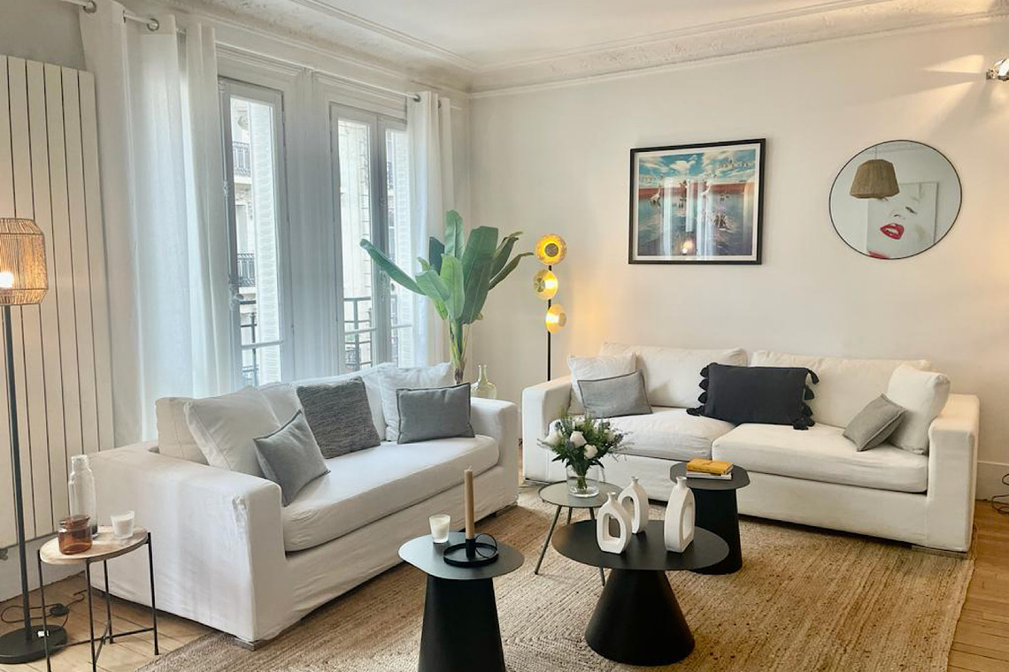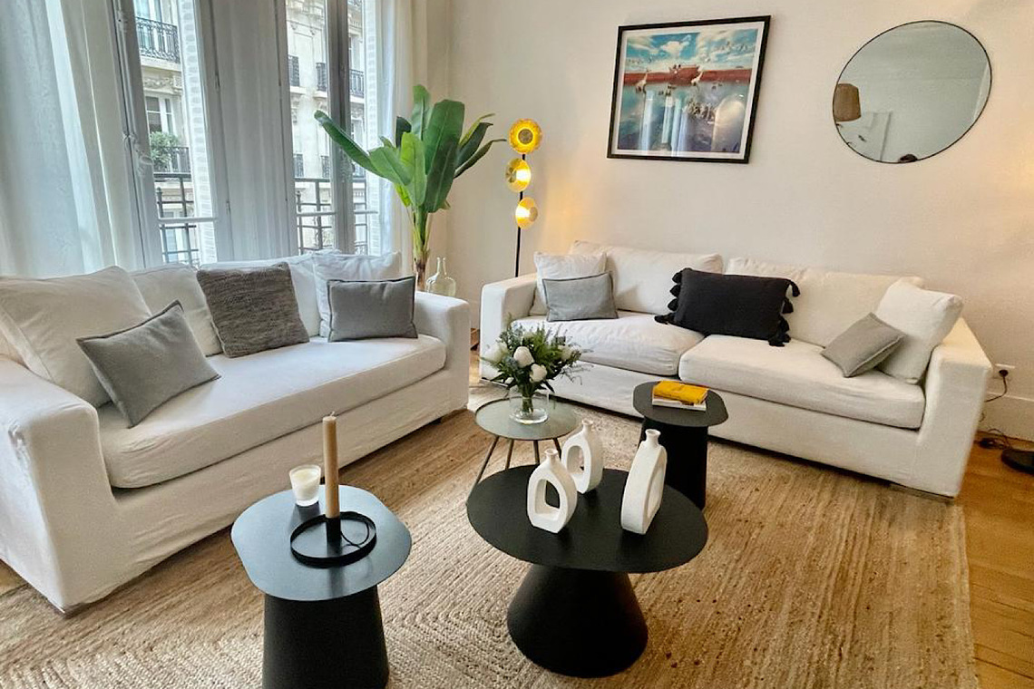 Möblierte Wohnung in Paris von 87M2, Lage: rue Poussin im 16. Arrondissement von Paris, Auteuil-Viertel, in einem Pariser Wohnanlage 3 OG.