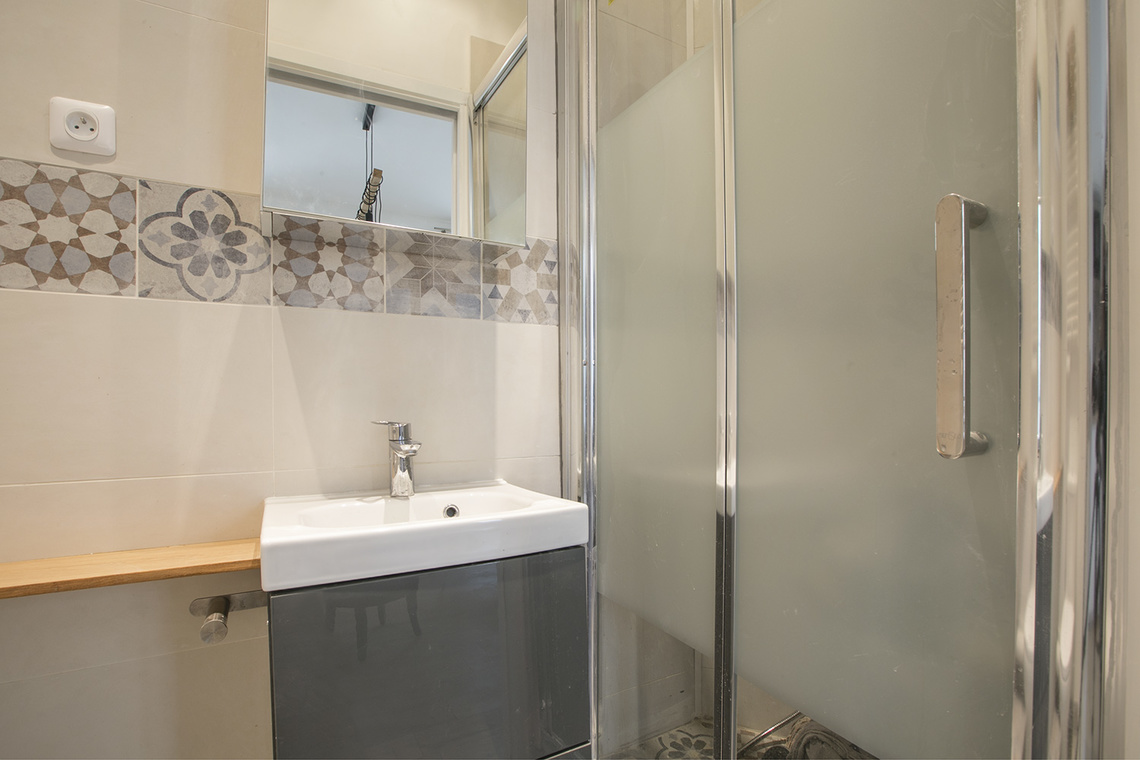 Möblierte 1-Zimmer Wohnung in Paris von 24M2, Lage: rue de Mulhouse im 2. Arrondissement von Paris, Montorgueil-Viertel, in einem Pariser Wohnanlage 1 OG.