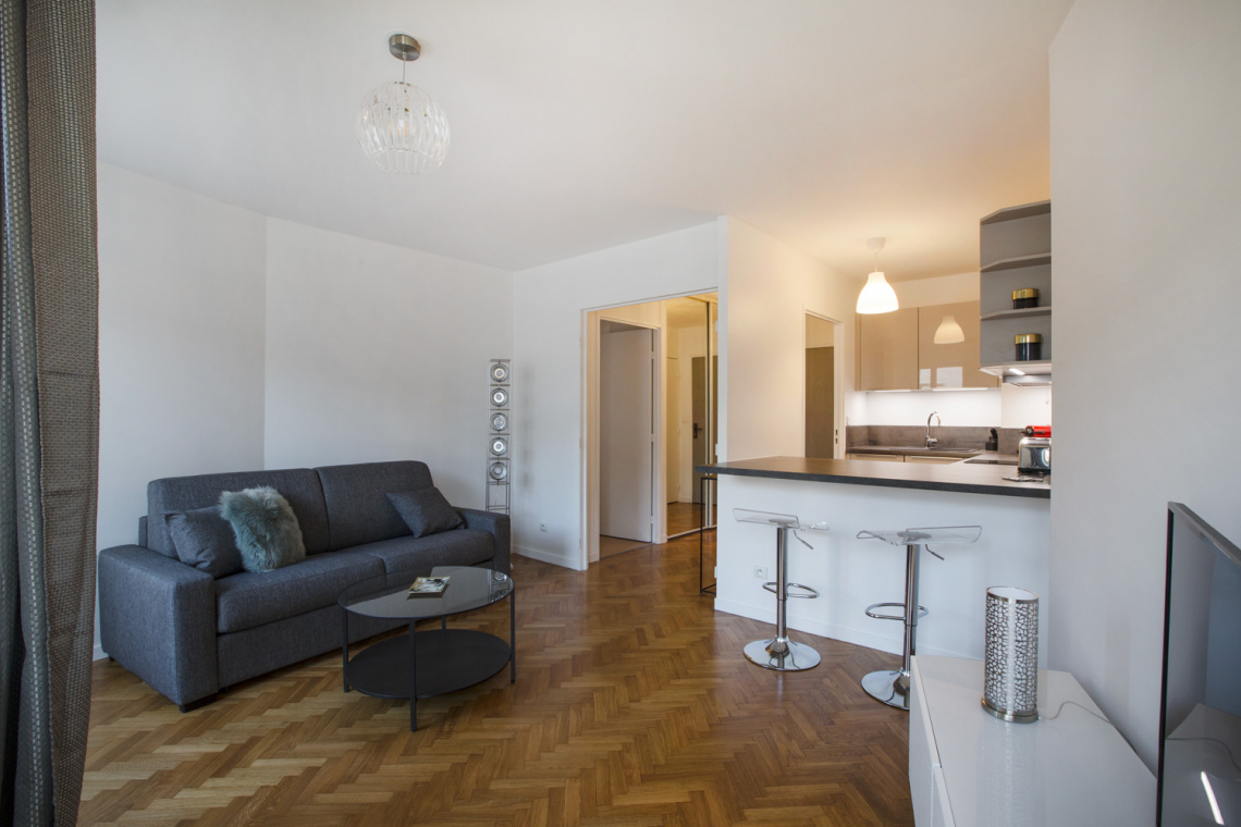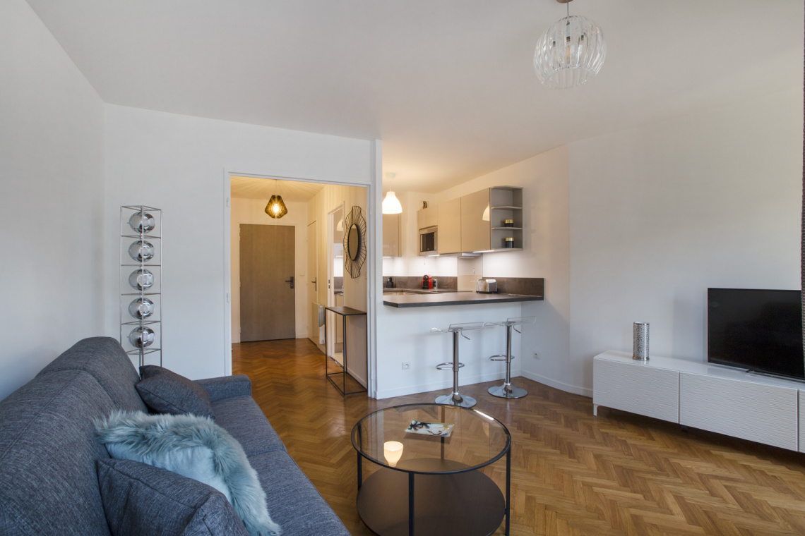 Möblierte Wohnung in Paris von 43M2, Lage: rue Nicolas Chuquet im 17. Arrondissement von Paris, Ternes-Viertel, in einem Pariser Wohnanlage 6 OG.