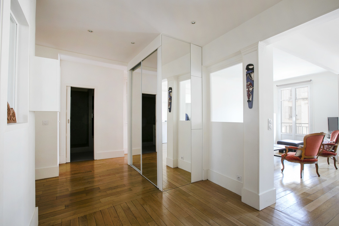 Möblierte Wohnung in Paris von 92M2, Lage: rue Truffaut im 17. Arrondissement von Paris, Batignolles-Viertel, in einem Pariser Wohnanlage 3 OG.