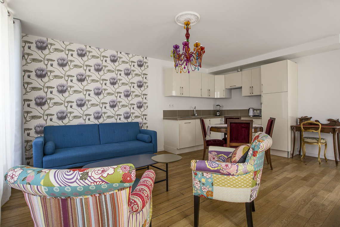 Möblierte Wohnung in Paris von 47M2, Lage: rue de Tracy im 2. Arrondissement von Paris, Grands Boulevards-Viertel, in einem Pariser Wohnanlage 4 OG.