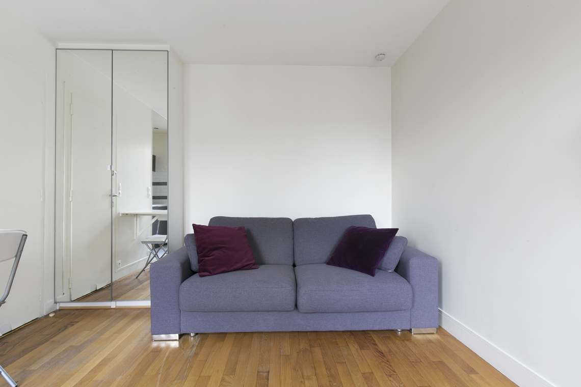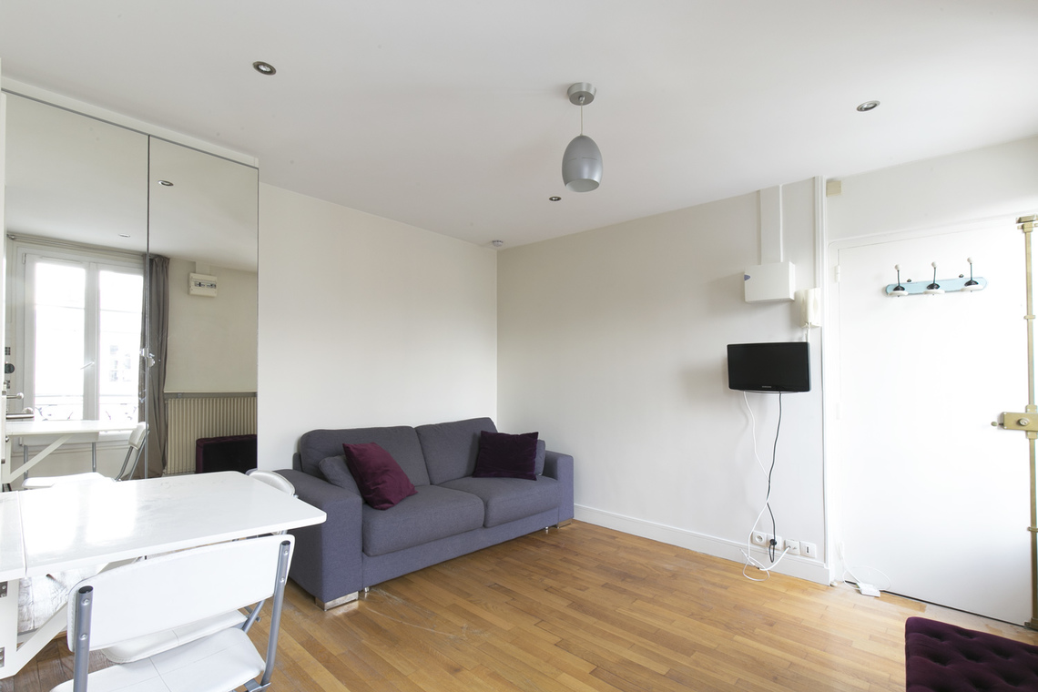 Möblierte 1-Zimmer Wohnung in Paris von 16M2, Lage: rue de Saussure im 17. Arrondissement von Paris, Batignolles-Viertel, in einem Pariser Wohnanlage 4 OG.