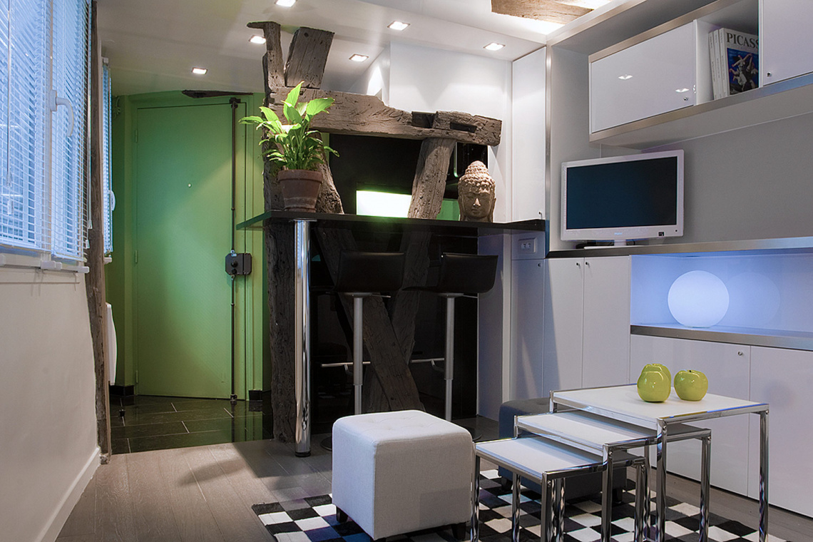 Möblierte Wohnung in Paris von 24M2, Lage: rue Vieille du Temple im 4. Arrondissement von Paris, Marais-Viertel, in einem Pariser Wohnanlage 1 OG.