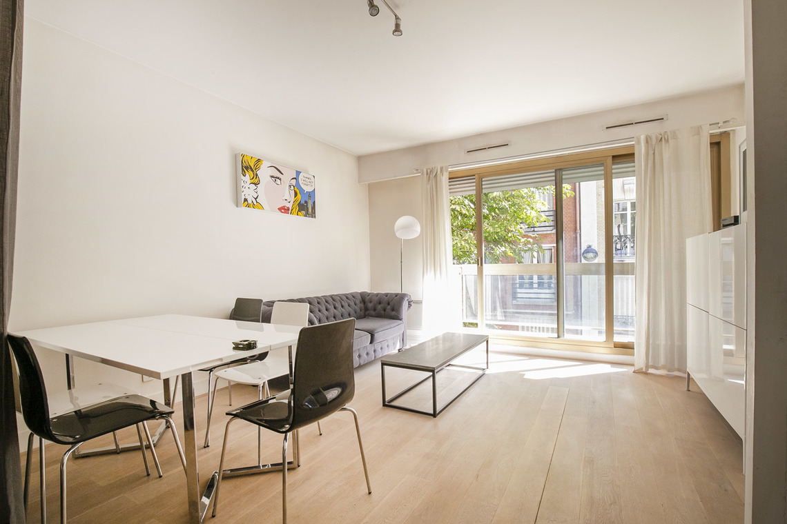 Möblierte 1-Zimmer Wohnung in Paris von 33M2, Lage: rue de la Cure im 16. Arrondissement von Paris, Auteuil-Viertel, in einem Pariser Wohnanlage 2 OG.