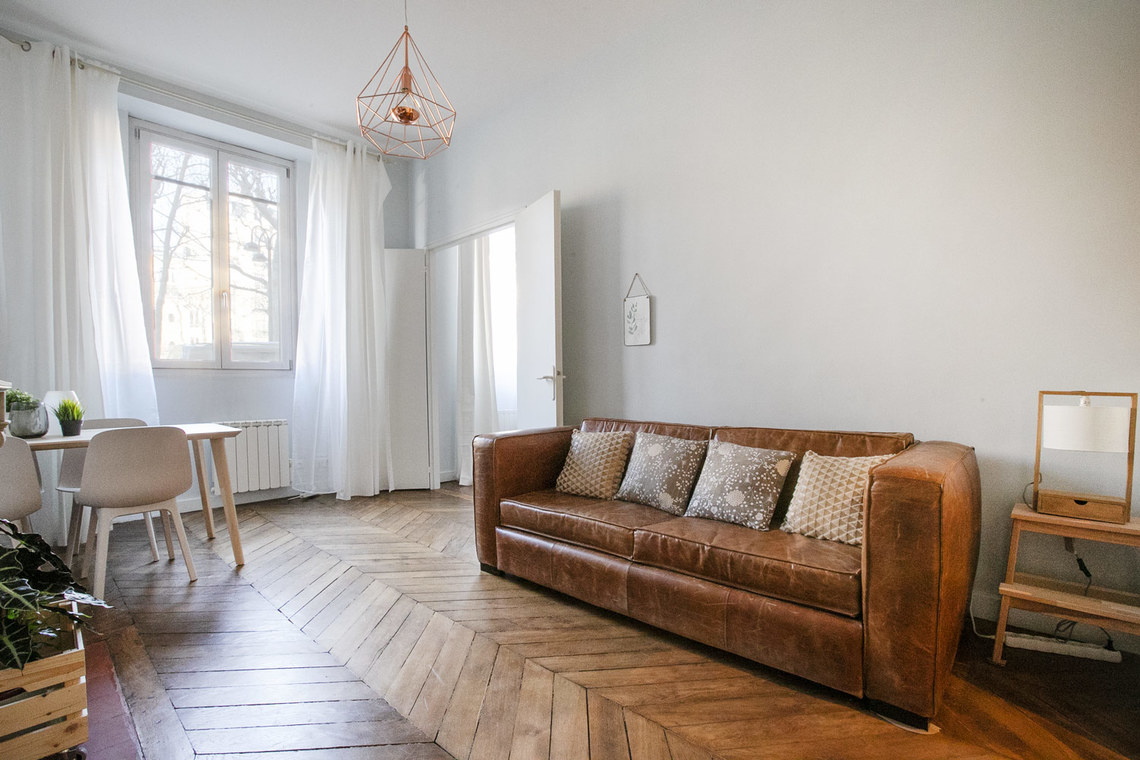 Möblierte Wohnung in Paris von 59M2, Lage: avenue de Breteuil im 7. Arrondissement von Paris, Invalides-Viertel, in einem Pariser Wohnanlage Erdgeschoss .