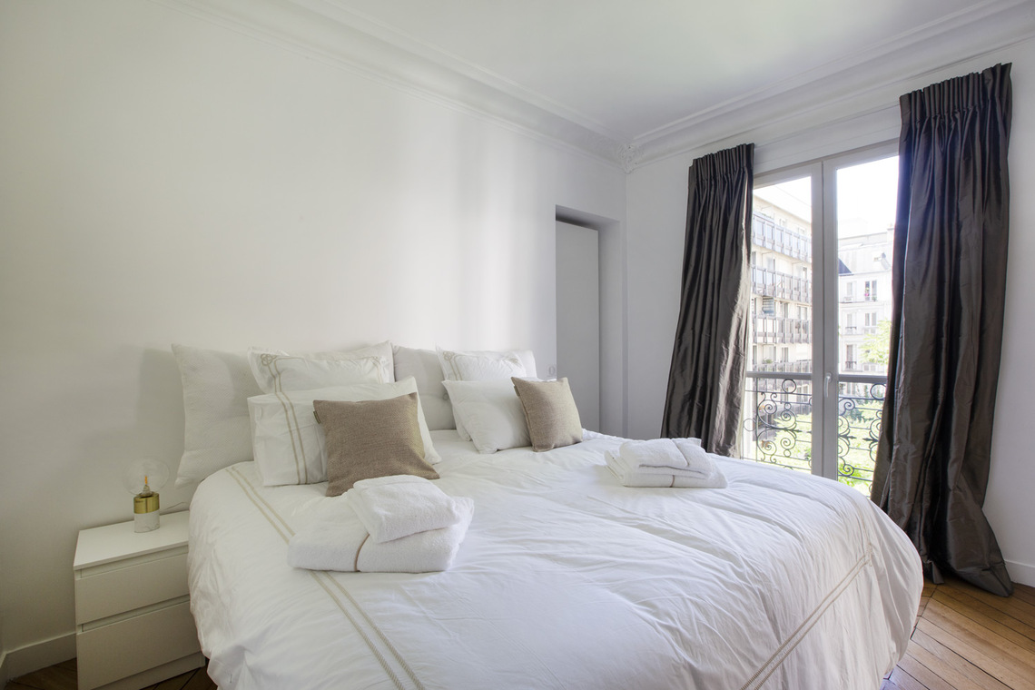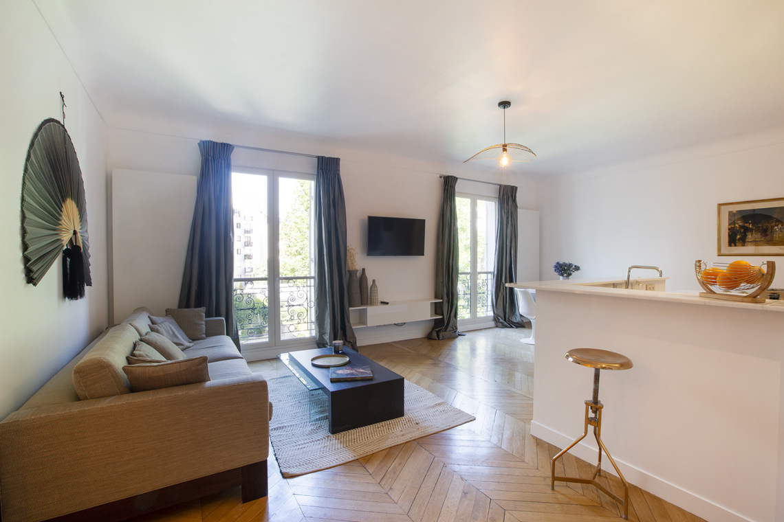 Möblierte Wohnung in Paris von 82M2, Lage: rue Viète im 17. Arrondissement von Paris, Monceau-Viertel, in einem Pariser Wohnanlage 3 OG.