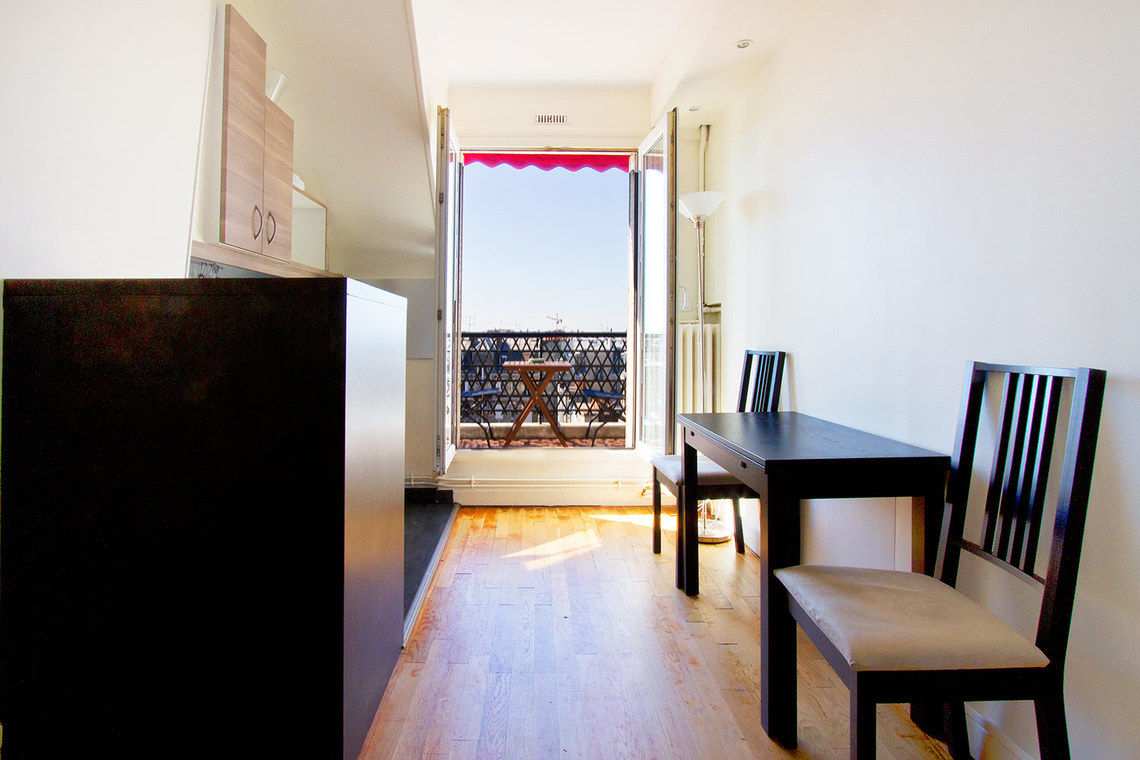 Möblierte Wohnung in Paris von 30M2, Lage: rue la Condamine im 17. Arrondissement von Paris, Batignolles-Viertel, in einem Pariser Wohnanlage 7 OG.