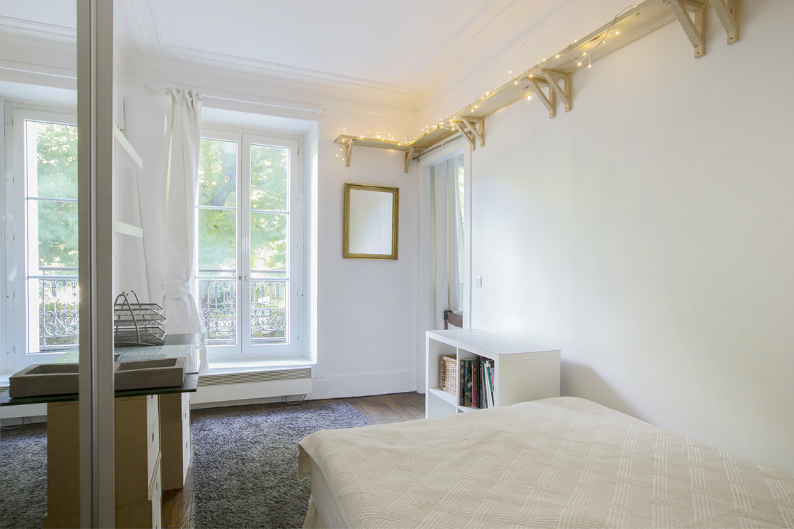 Appartement meublé à Paris d'environ 27m2, situé rue du Général Blaise dans le 11ème arrondissement de Paris - quartier Ménilmontant, dans un immeuble parisien de standing, au 1er étage sans ascenseur.