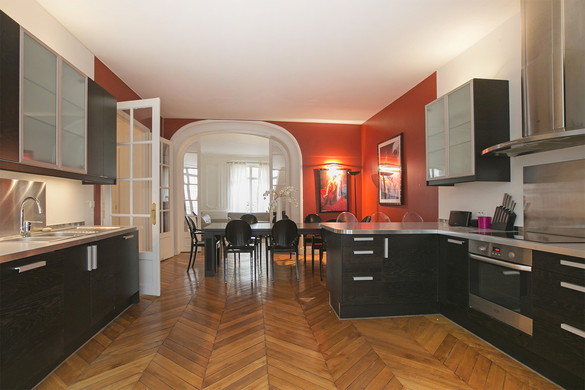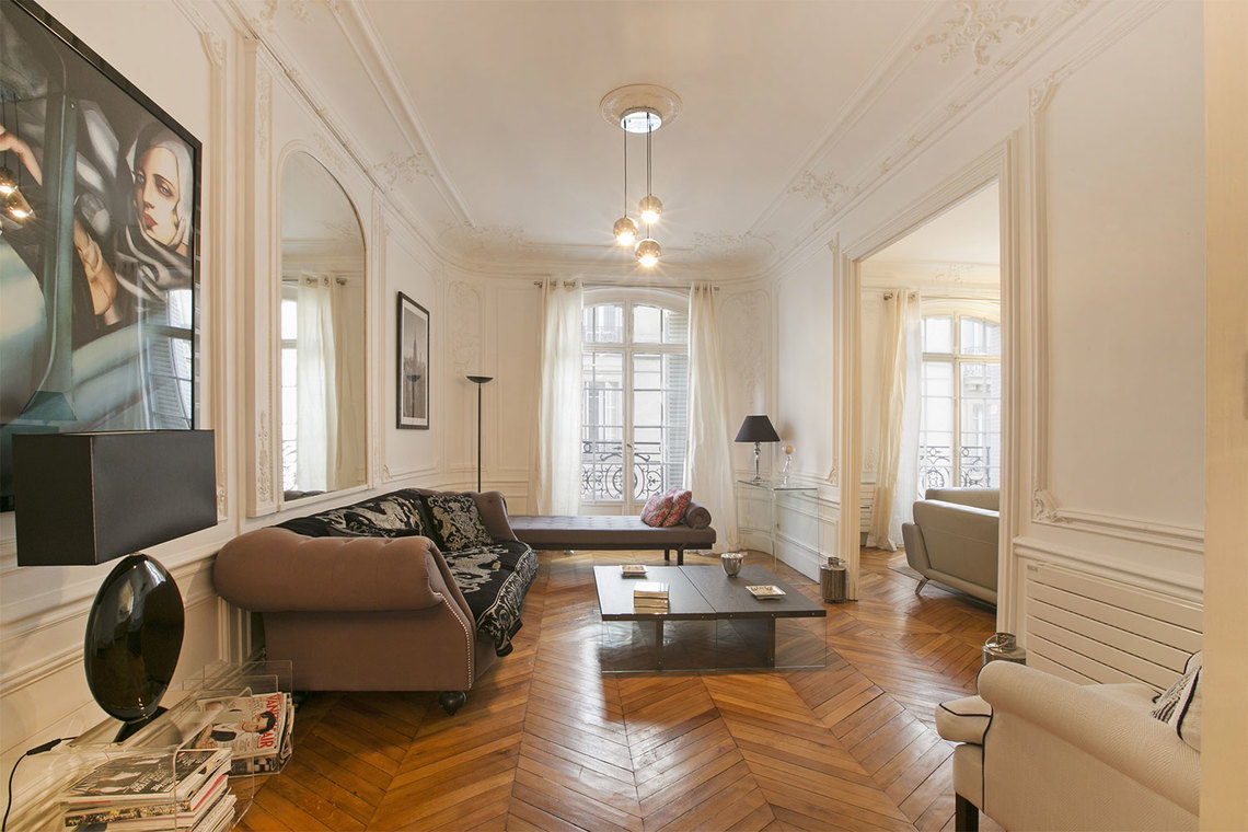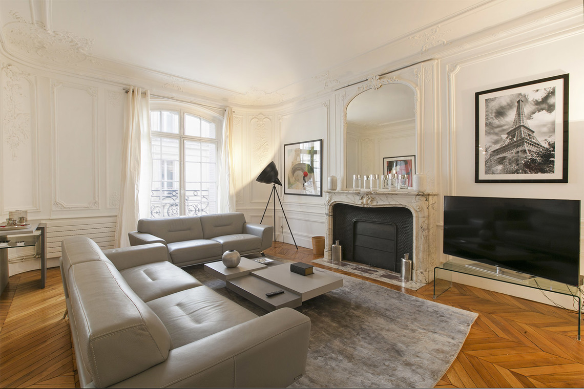 Appartement meublé à Paris d'environ 159m2, situé rue Paul Baudry dans le 8ème arrondissement de Paris - quartier Champs Elysées, dans un immeuble parisien de standing avec gardien, au 3ème étage avec ascenseur.