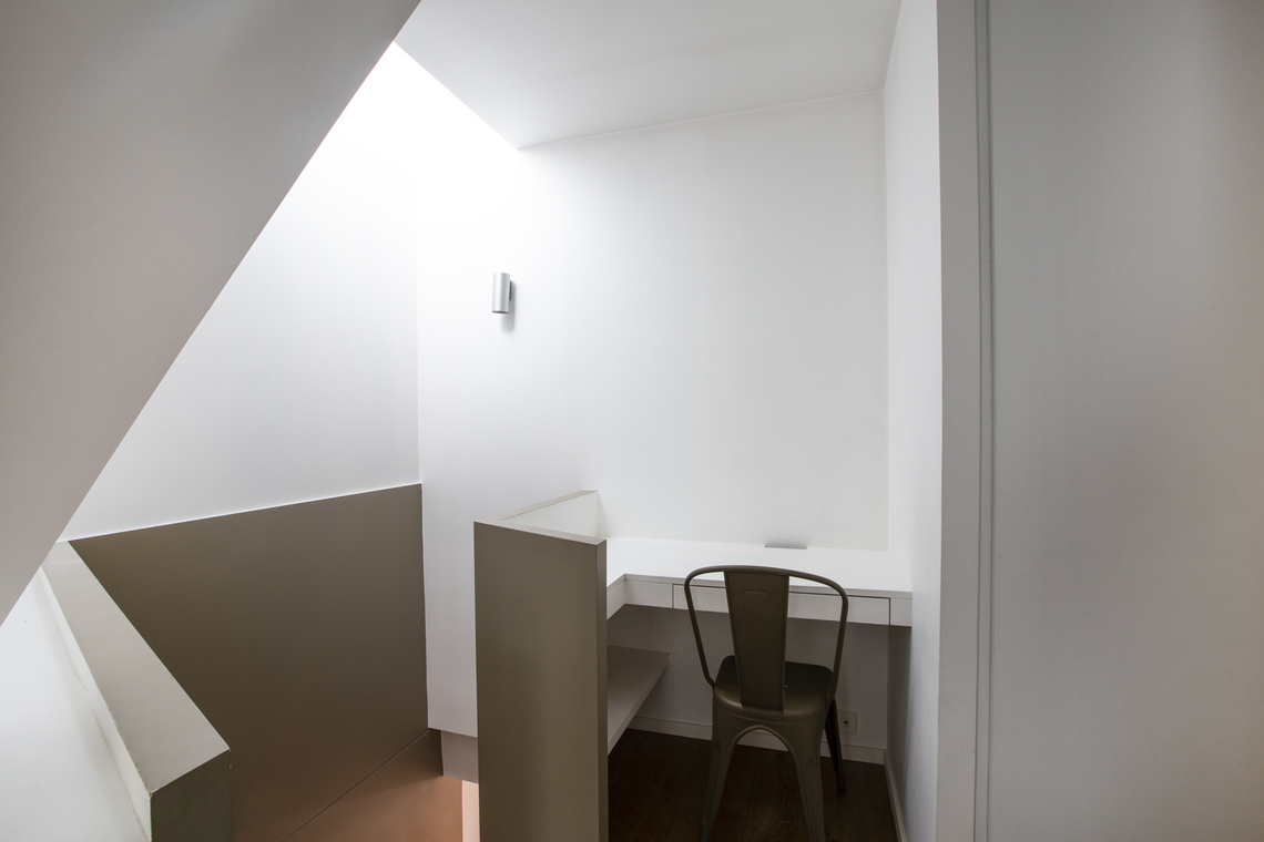 Au deuxième niveau se trouve un coin bureau, un wc séparé et des rangements, une deuxième chambre avec sa salle de bain.