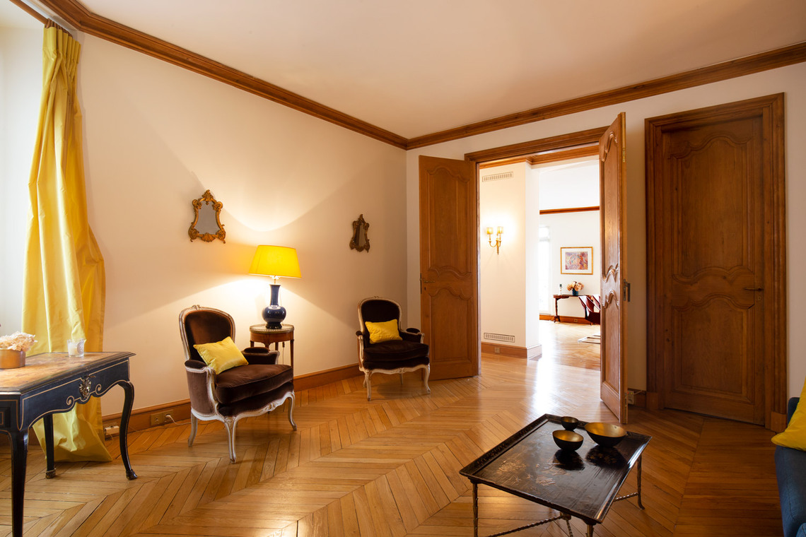 Résidence secondaire ou bail société uniquement. Très bel appartement meublé et entièrement équipé d'environ 115m2, vue Tour Eiffel et Trocadéro, situé avenue Charles Floquet, dans le 7ème arrondissement de Paris - quartier Champs de Mars Tour Eiffel.