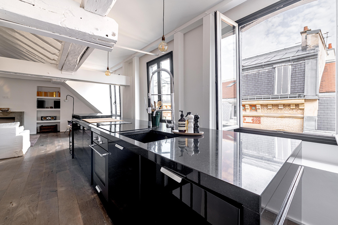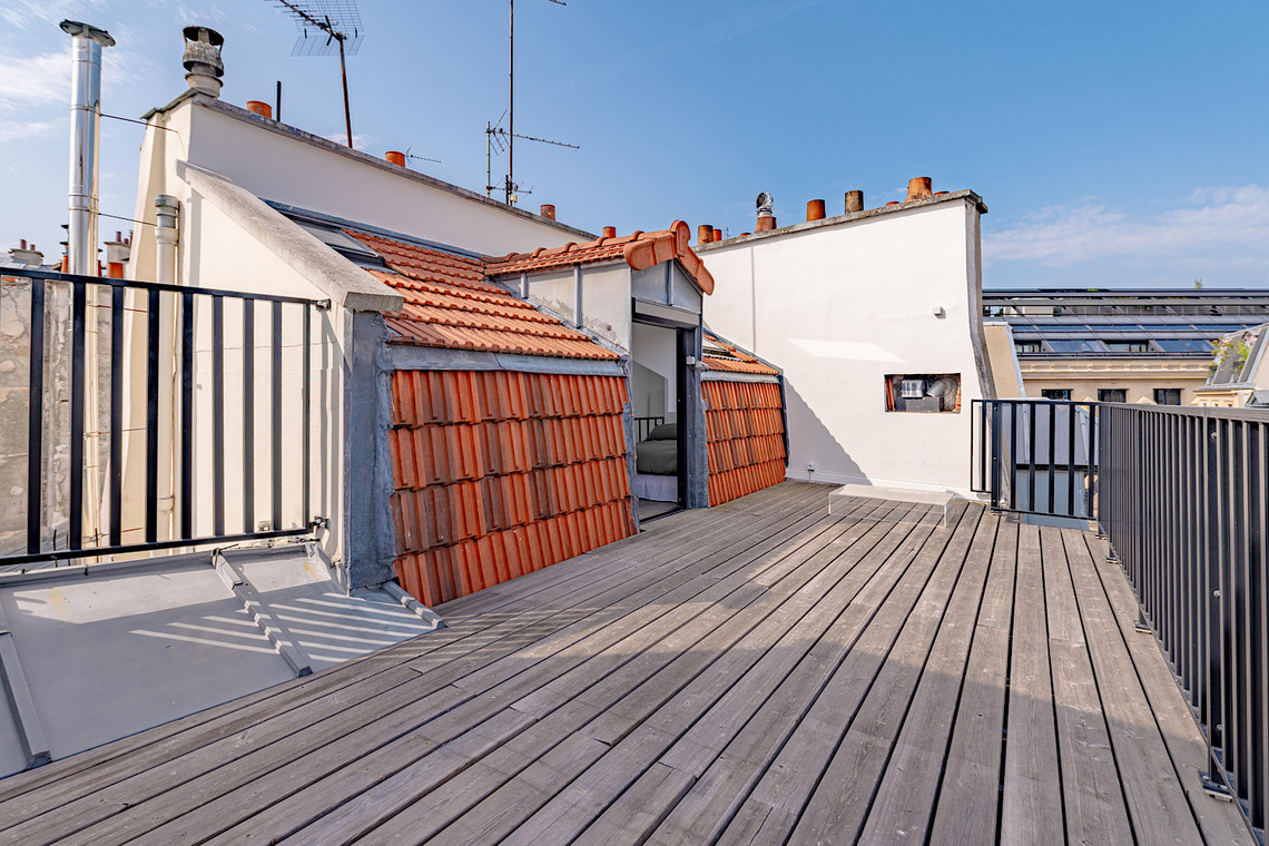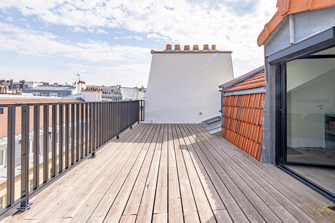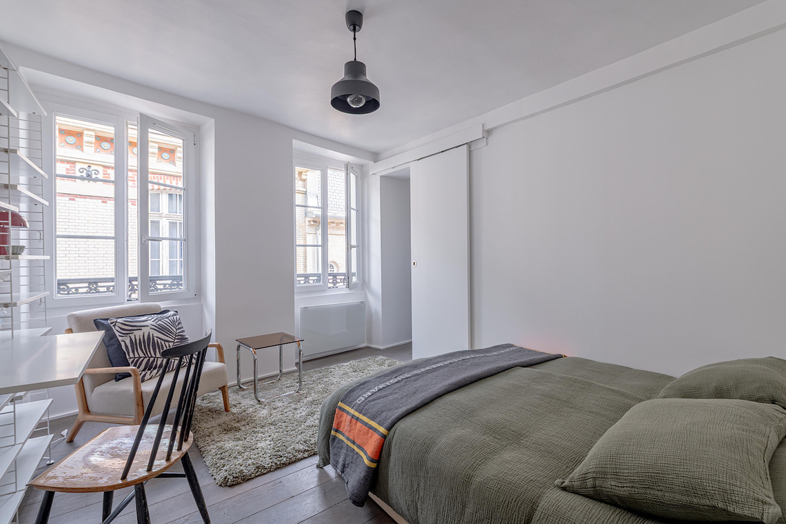 Меблированная квартира в Париже площадью около 80м2, расположенная на rue de la Jussienne в 2-м округе в здании класса люкс на 5-м этаже.